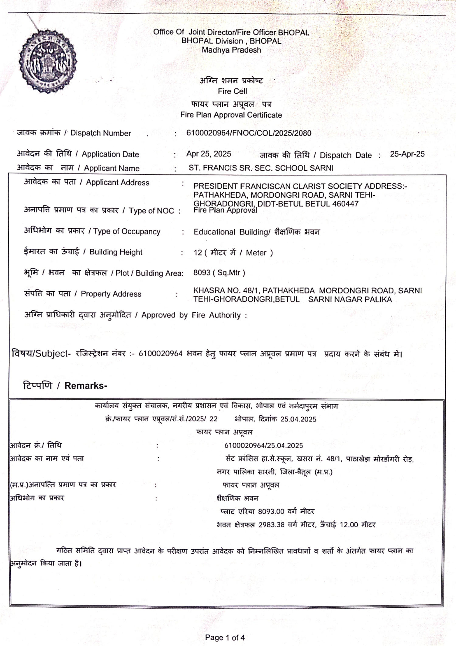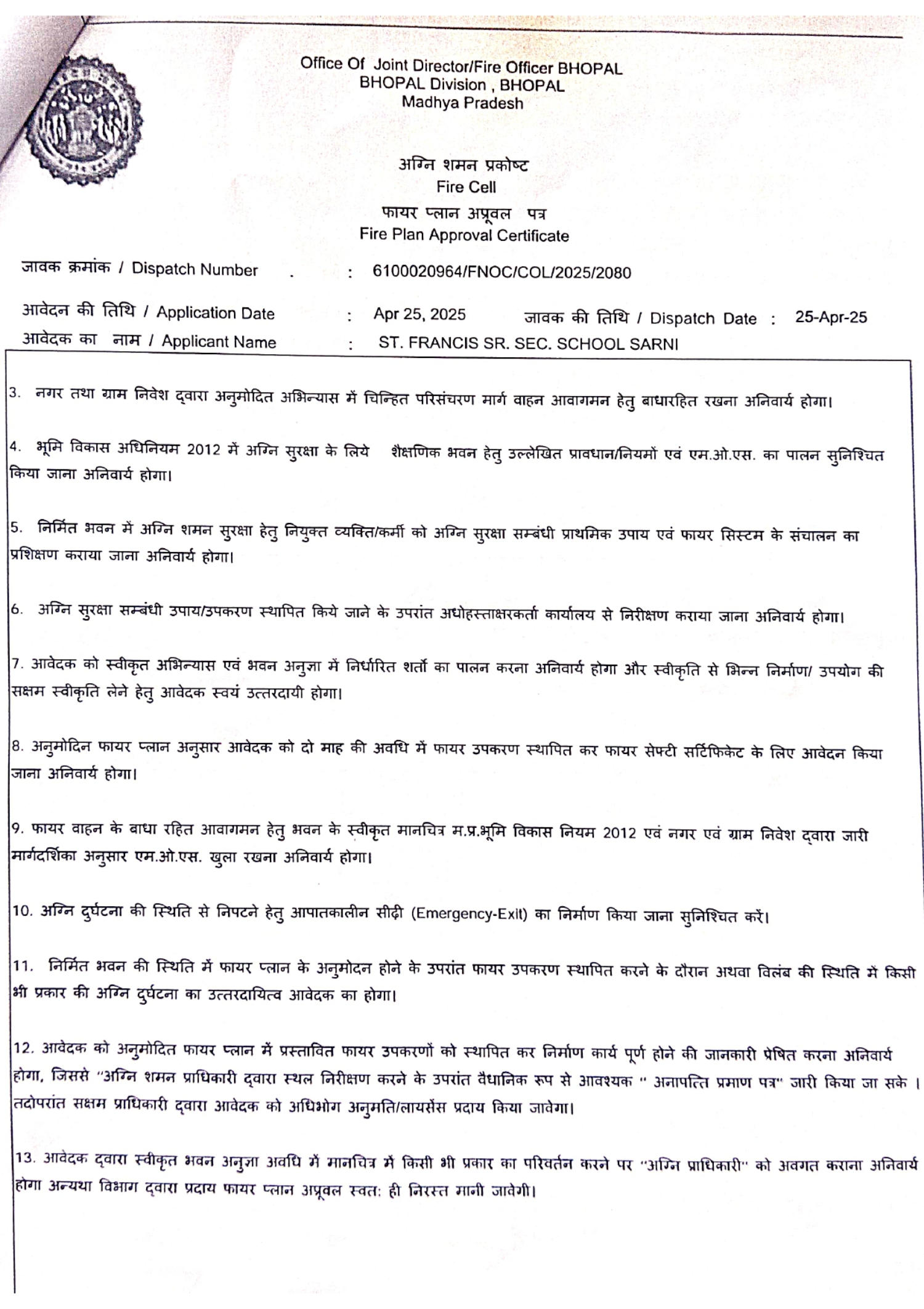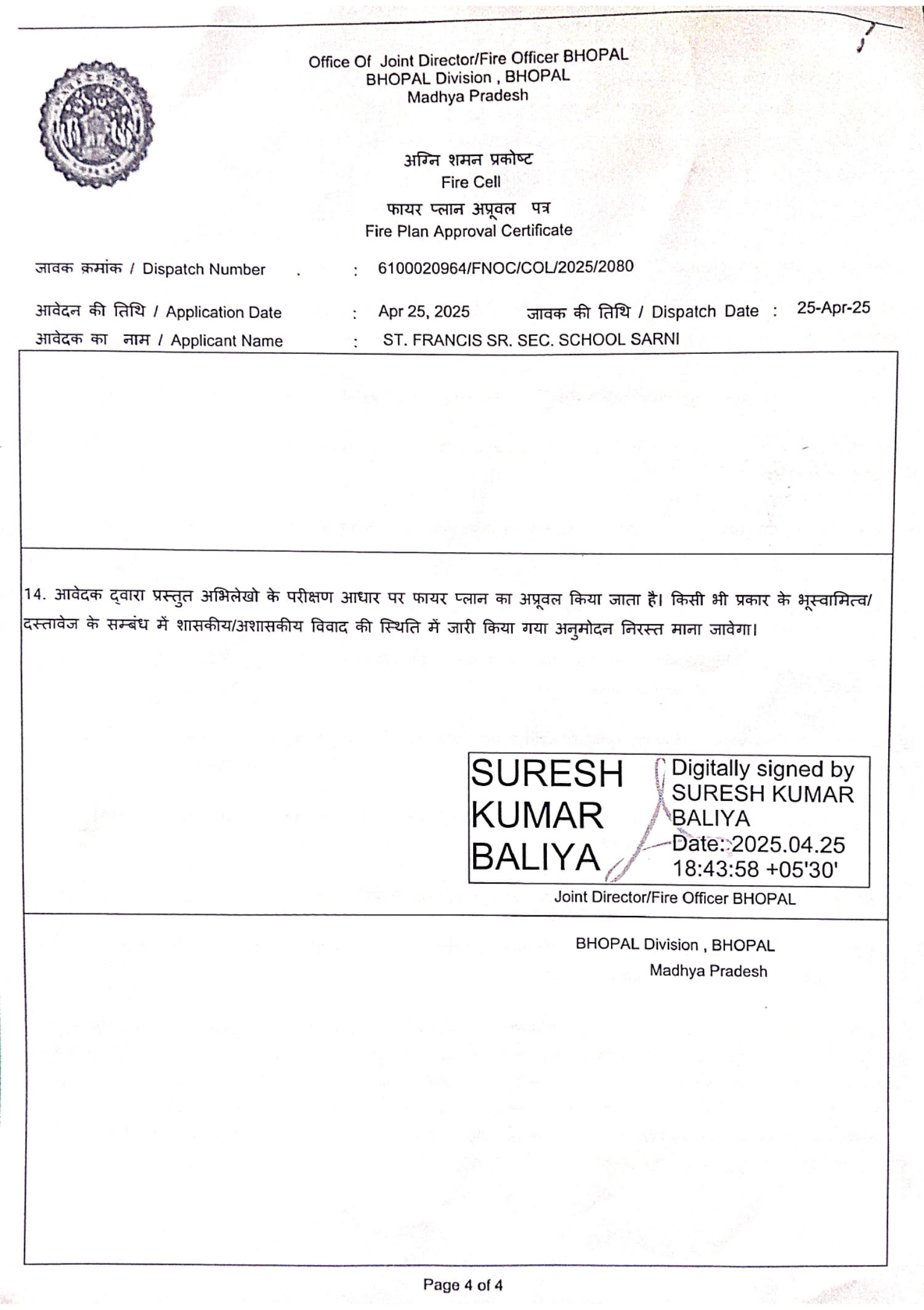 FIRE CERTIFICATE